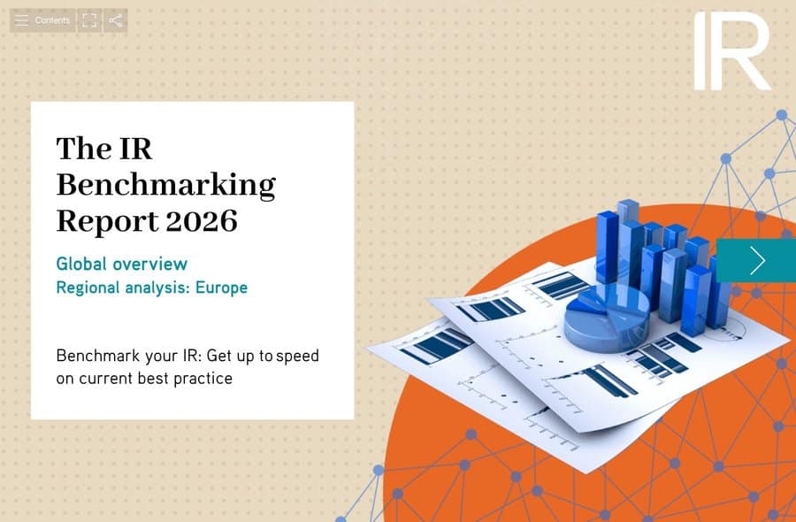 Backed by 14 years of research into the world of investor relations best practice, our research is focused on delivering actionable insights that help shape the most successful IR programs. Read the report now and sign up to make full use of our IR Benchmarking Tool, for a view of the IR world you can compare, monitor and put to work.
