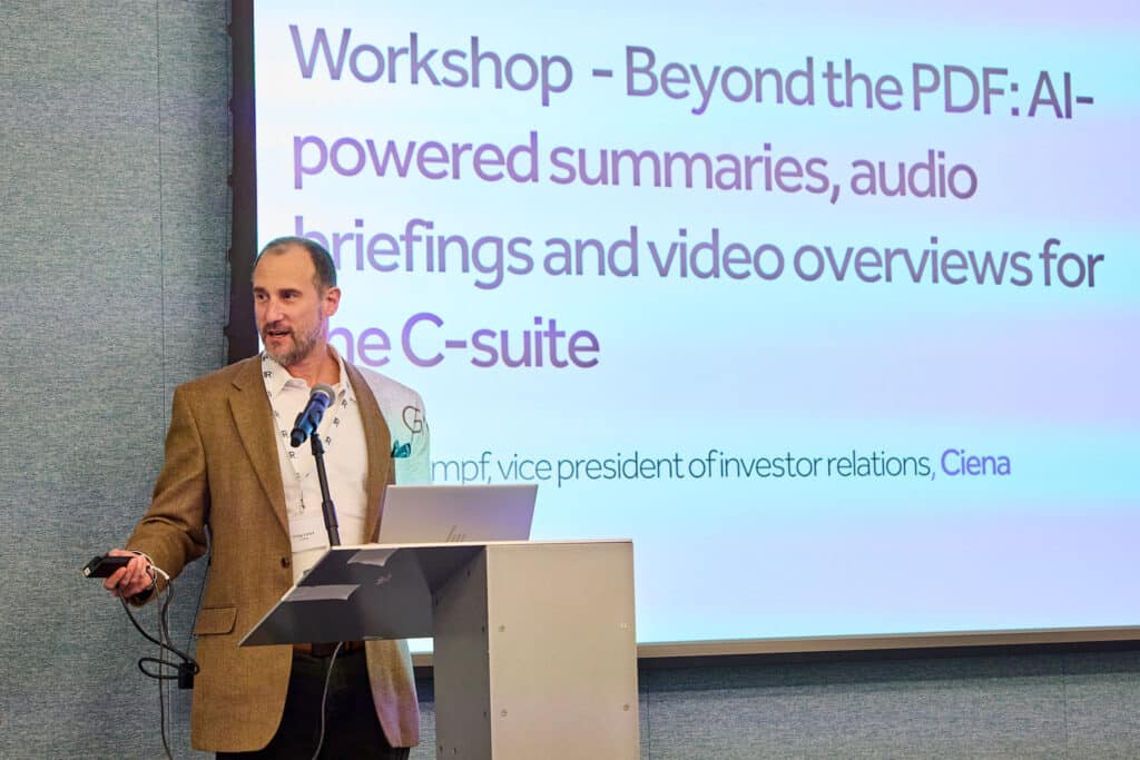Gregg will show how the paid version of NotebookLM enables IR teams to efficiently digest sell-side reports and post-earnings commentary and transform them into executive-ready briefing documents, podcast-style audio overviews, and narrative slide video recaps – giving you flexible, multimodal outputs that match the diverse consumption preferences of your leadership team.