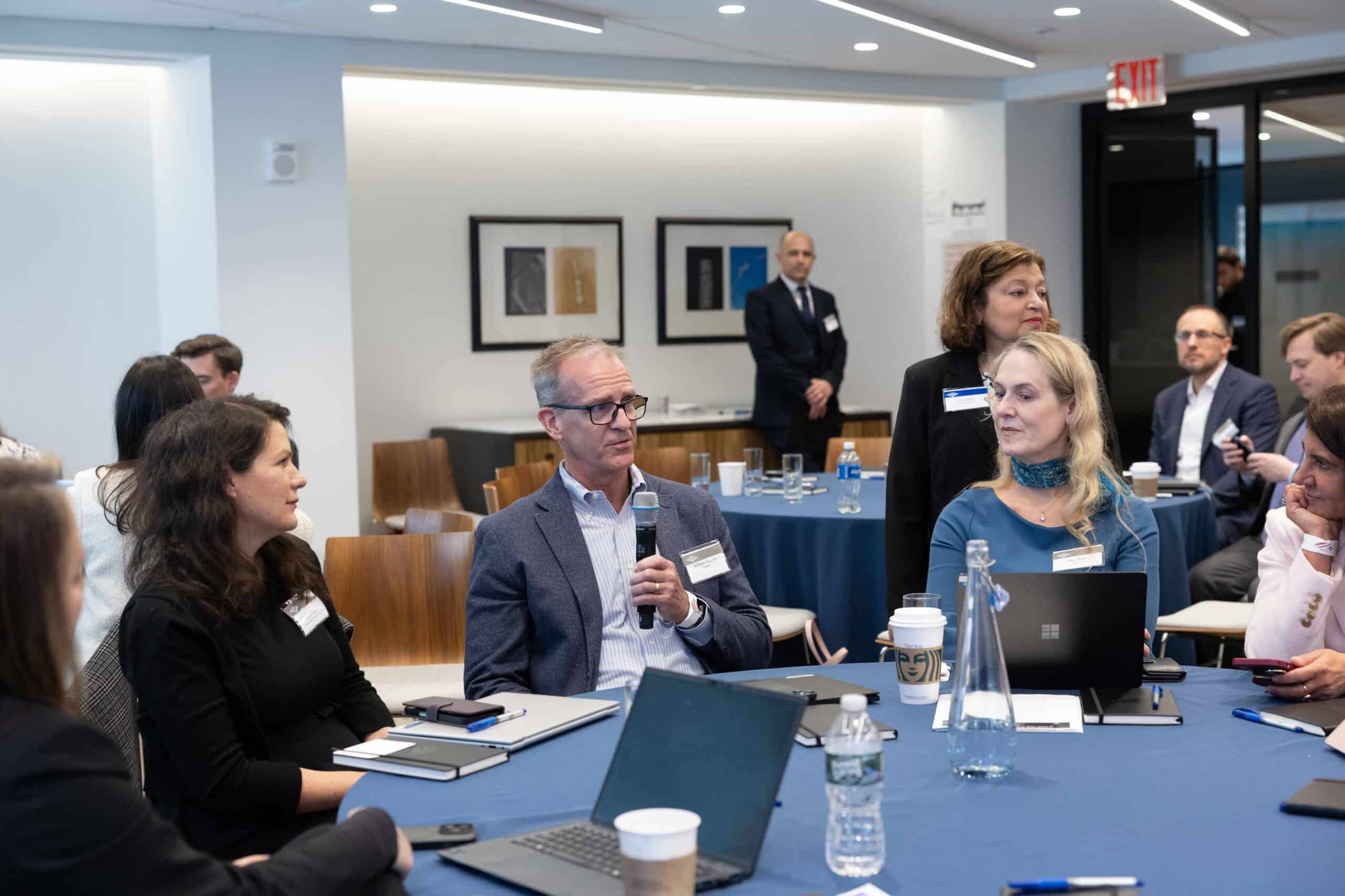 Small roundtables of IROs discuss these issues face to face.